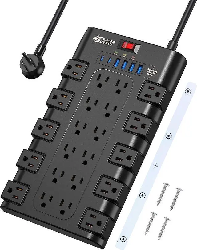 SUPERDANNY 2 USB-C Ports Fast Charging Station Power Strip Surge Protector 22 Outlets 2100J Iphone Charger