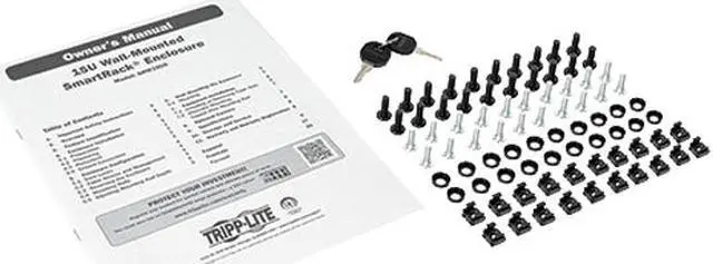 SRW15US Wallmount Rack Enclosure(42) M6 screws(42) M6 cage nuts(42) M6 washers(2) KeysOwner's Manual |