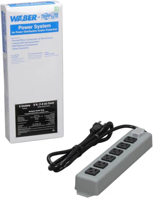 Multi-outlet power strip offers convenient power distribution in workbench ,wallmount or floor mount applicationsIncludes 6 NEMA 5-15R output receptacles with 1.63" center-to-center outlet spacingLighted power switch with transparent snap-over guard to prevent accidental shutoffKeyhole mounting tabs support permanent installation on a wide variety of surfaces |
