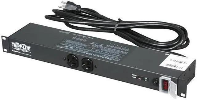 Versatile all-metal cabinet with detachable mounting flanges allows rackmount ,wallmount ,undercounter and other creative mounting options Uses one rack space (1U) in standard 19.00" rack ("zero U" mounting possible in many racks) 3840 Joules ,96,000 A network-grade AC surge suppression with EMI/RFI filtering 12 NEMA5-15R output receptacles (2 front ,10 rear) 15 Feet AC cord with NEMA5-15P straight-in plug connection Diagnostic LEDs confirm proper wiring and suppressor operation Lighted power switch confirms power on ,off status Snap-in switch guard prevents accidental turn off 15 A capacity with circuit breaker 120V AC ,50/60Hz electrical compatibility |