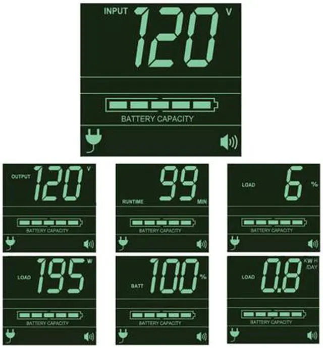 Audible alarm indicates UPS startup ,power-failure ,low-battery ,overload ,UPS fault and remote shutdown conditions |