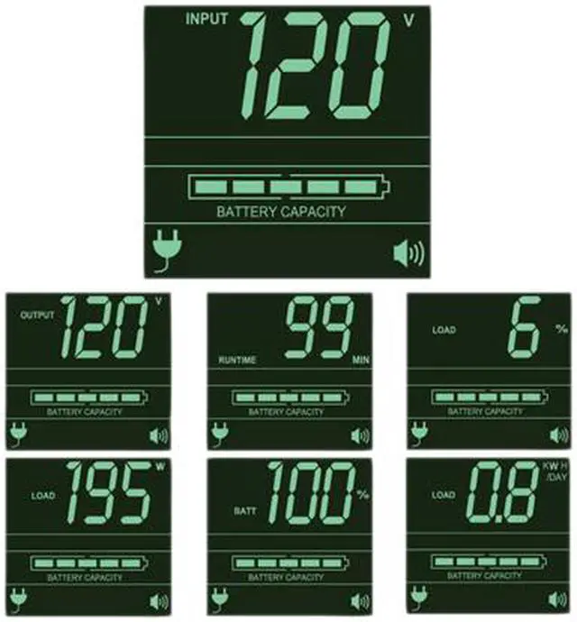Audible alarm indicates UPS startup ,power-failure ,low-battery ,overload ,UPS fault and remote shutdown conditions |