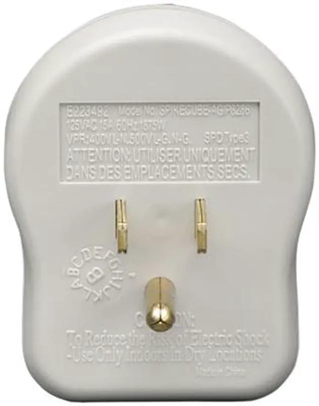 1 Outlet ,Direct plug-inSurge energy absorption: 600 Joules ,6,500 AmpsDiagnostic LEDs indicate protection present (green) and ground present (red) |