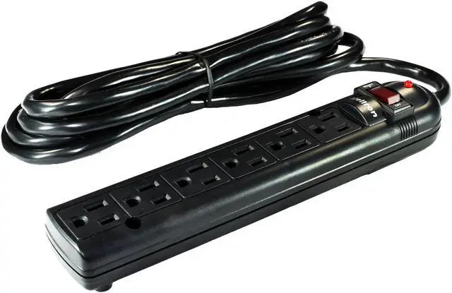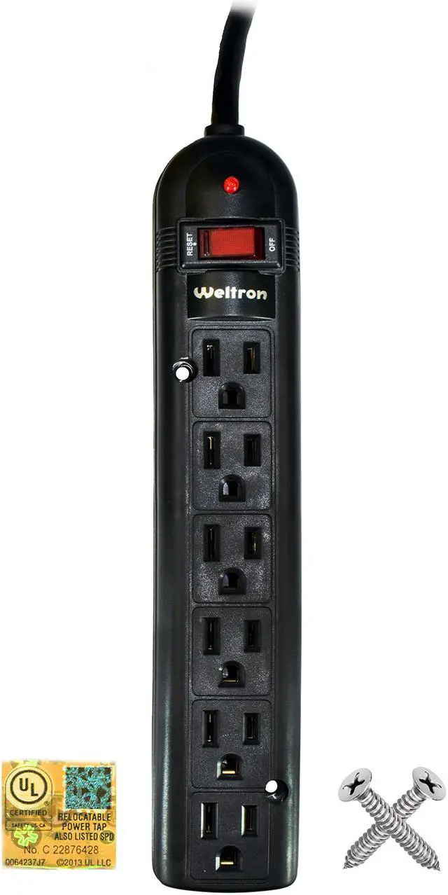 WELTRON 10ft Power Cord 6-Outlet Surge Protector Power Strip Black WSP600PLF10BK