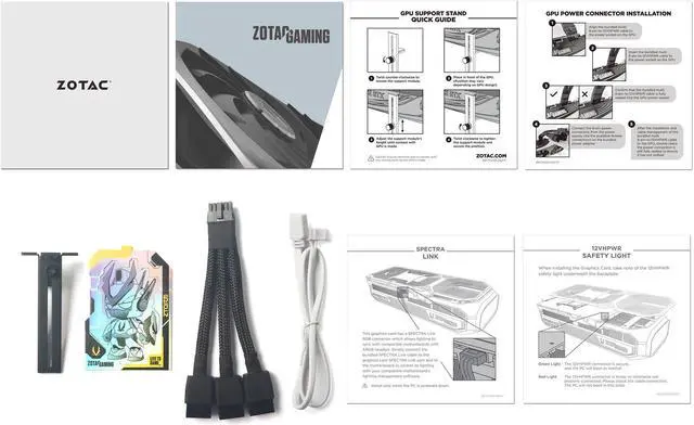 INSIDE THE BOX• ZOTAC GAMING GeForce RTX 5080AMP Extreme Infinity• GPU Support Stand• SPECTRA Link cable• 3 x 8-pin to 16-pin cable• User Manual• Quick Start Guide |
